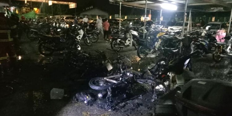 Penduduk di Blok 362, Lebuh Maccalum di sini cemas selepas dikejutkan dengan kebakaran melibatkan lapan buah motosikal yang diletakkan di...