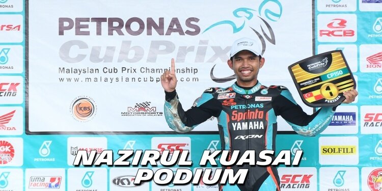 Nazirul Izzat Bahauddin melakarkan kemenangan bagi pasukan PETRONAS Sprinta Yamaha Maju Motor di tangga teratas podium bagi kategori CP150 di...