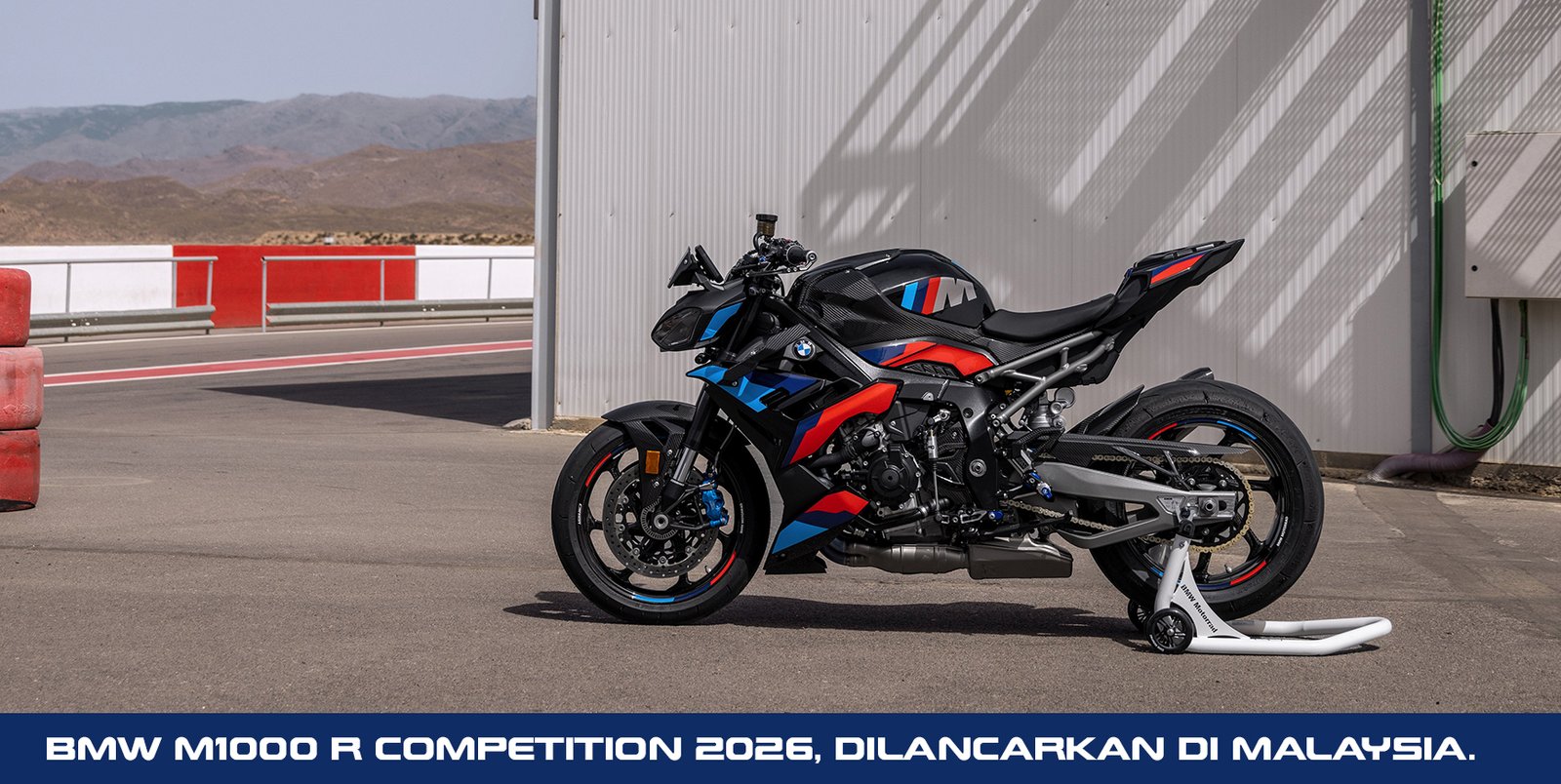 BMW Motorrad Malaysia memperkenalkan M1000 R Competition 2026 ke pasaran tempatan, sebuah naked sports berprestasi tinggi yang dibawa masuk dengan harga RM219,500. Harga ini tidak termasuk insurans. Model ini hadir dalam satu varian sahaja, M Competition Blackstorm yang dipadankan warna ikonik M Motorsport sekali gus menyerlahkan identiti mesin ini sebagai jentera berasaskan litar.
