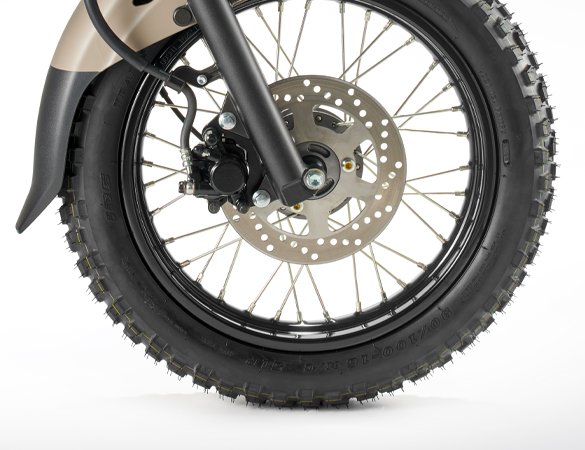 Bahagian roda menggunakan rim berjejari bersaiz 16 inci yang dilengkapi dengan tayar bertiub bersaiz 90/100 di bahagian hadapan dan belakang. Sistem membrek pula menggunakan cakera hidraulik tunggal di bahagian hadapan dan brek dram mekanikal di belakang, tanpa bantuan sistem ABS. Keupayaan jentera ini disokong oleh telescopic forks di bahagian hadapan dan penyerap hentak berkembar yang boleh dilaraskan pra-bebannya (preload) di bahagian belakang.