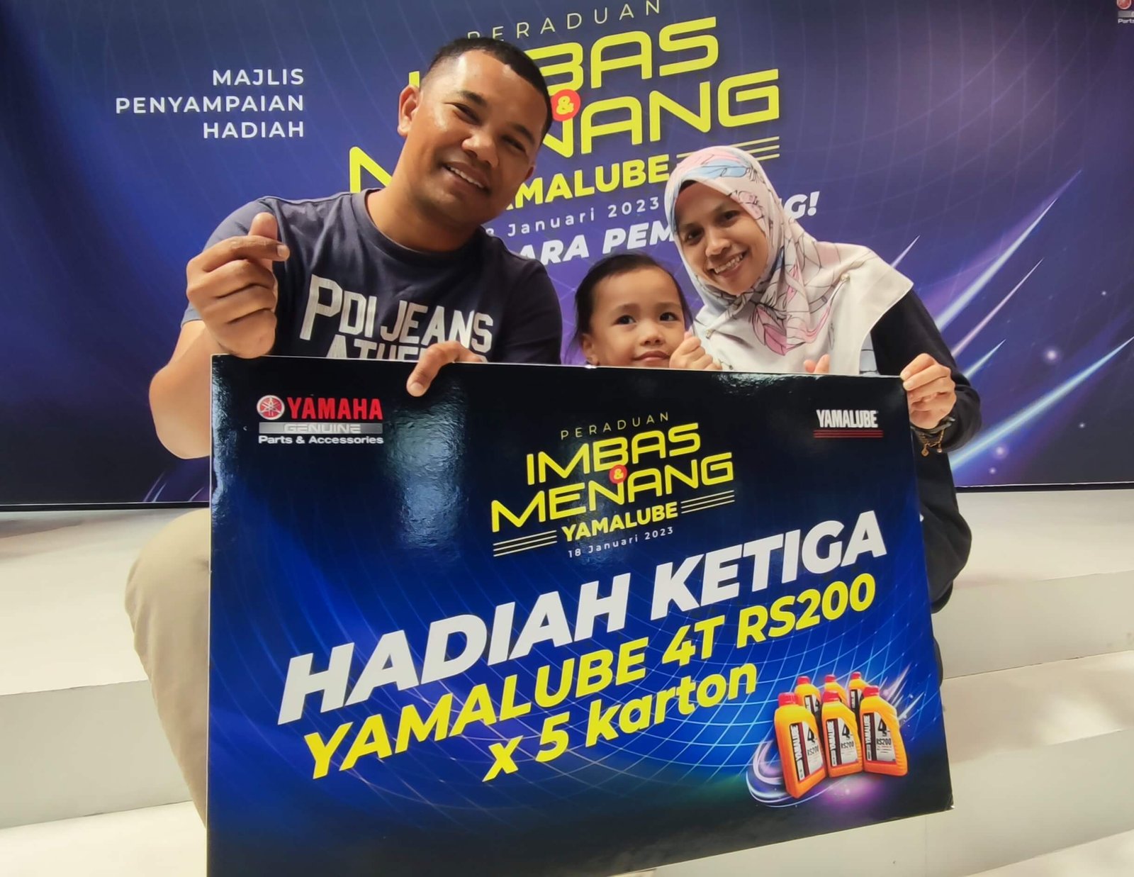 Ridzuan membawa pulang sebuah motosikal model Yamaha Y15ZR sementara Ferdaus memenangi 5 karton minyak pelincir 4T model Yamalube RS200. Peraduan Imbas & Menang Yamalube bermula dari 1 Februari 2022 dan berakhir pada 31 Disember 2022.