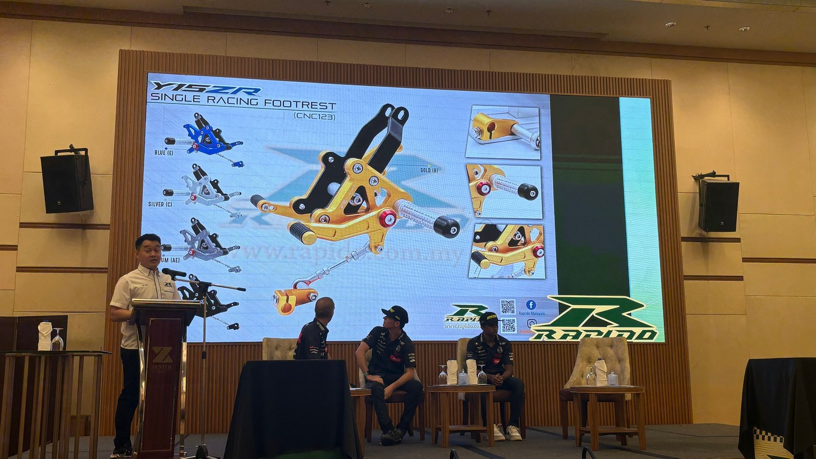 Selain sesi bertemu peminat, acara ini turut menjadi pentas utama bagi Rapido memperkenalkan tiga produk baharu iaitu Rapido 628 CNC Casting Rim, Rapido x CKJ Racing Ultra-Light Racing Pulley Pin, dan Rapido x CKJ Racing Front Fork Spring. Ketiga-tiga komponen ini direka dengan fokus kepada prestasi, ketahanan dan ketepatan teknikal, sesuai untuk kegunaan harian mahupun perlumbaan profesional.