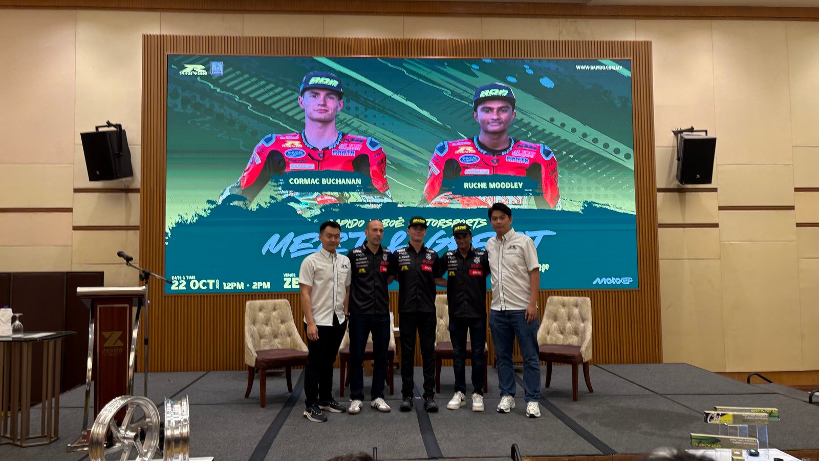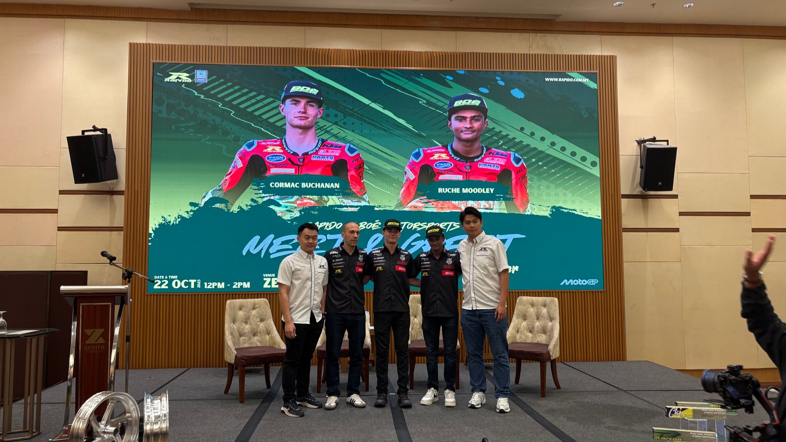 Program “Rapido X BOÉ Motorsports Meet & Greet with Moto3 Riders” yang berlangsung di Zenith Hotel Putrajaya pada 22 Oktober 2025 mempertemukan dua pelumba muda berbakat; Cormac Buchanan dan Ruche Moodley daripada pasukan BOÉ Motorsports. Kedua-dua pelumba Moto3 ini hadir sebagai duta rasmi Rapido, jenama aksesori motosikal tempatan yang semakin mengukuhkan kedudukannya di arena antarabangsa.