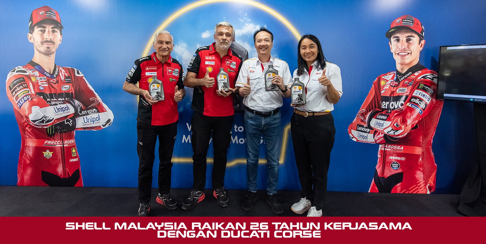 Shell Malaysia meraikan ulang tahun ke-26 kerjasama teknikalnya bersama Ducati Corse dalam kejuaraan MotoGP, dengan melancarkan minyak enjin motosikal terbaharu Shell Advance Ultra 10W-50 (API SP), minyak pelincir premium yang dipercayai penunggang di seluruh dunia. Majlis pelancaran ini berlangsung sempena pusingan MotoGP 2025 di Litar Antarabangsa Sepang.