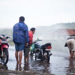 Pastikan paras air tidak melebihi bahagian tengah rim depan. Kekalkan kestabilan throttle, jangan terlalu perlahan kerana air boleh masuk ke ekzos atau kotak udara jika enjin “lemah”. Pastikan juga jarak dengan kenderaan lain cukup jauh untuk elak hentaman ‘ombak’ kecil yang boleh menyebabkan motor tersengguk atau mati enjin. Perlu ingat, walaupun kelihatan cetek, air yang deras tetap bahaya.