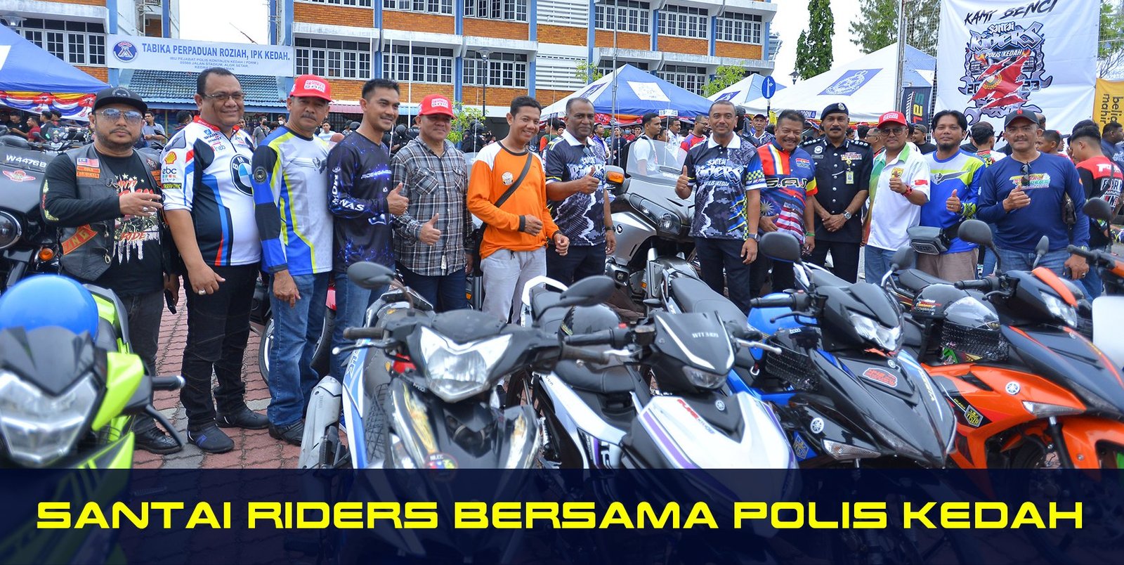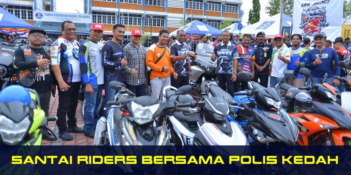 Susuk tubuh yang sentiasa digeruni di jalan raya khususnya dalam kalangan penunggang motosikal yang seboleh-bolehnya mengelak dari bertembung dengan pihak Polis, baru-baru ini telah dihimpunkan di bawah satu program yang sama. Santai Riders Bersama Polis Kedah yang berlangsung di Dataran Ibu Pejabat Polis Kedah Kontinjen (IPK) ini mendapat sambutan menggalakkan apabila dihadiri lebih 1000 penunggang motosikal dan peminat sukan bermotoran.