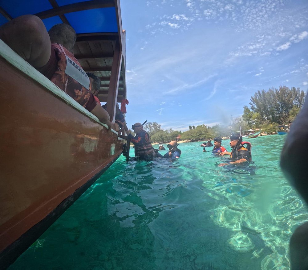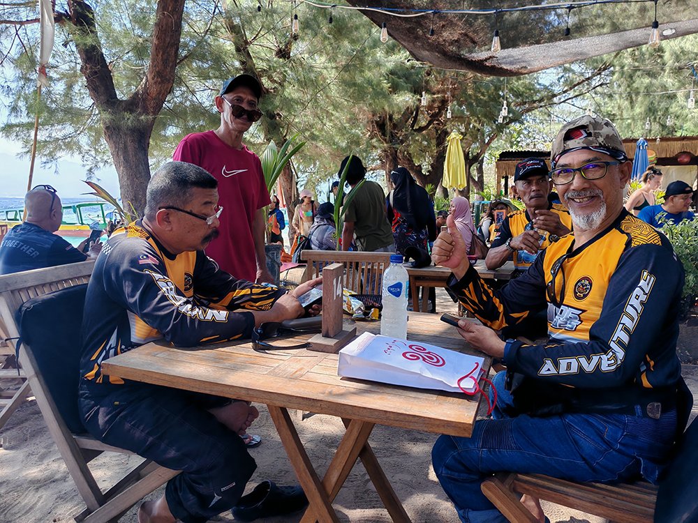 Keesokan paginya, tepat jam 8.00 pagi, deruman enjin bergema menandakan bermulanya perjalanan ke Pelabuhan Gili Lembar. Dari situ, peserta menaiki bot menuju ke gugusan pulau indah Gili Terawangan, Gili Nanggu, Gili Sudak dan Gili Kedis. Air laut yang jernih menjadi pentas aktiviti snorkeling dan diving, sementara sebahagian peserta memilih berehat di pantai atau menikmati makan tengah hari di restoran terapung. Suasana penuh keceriaan menggambarkan semangat kebersamaan di antara ahli kelab yang datang dari pelbagai latar belakang, disatukan oleh minat dan persahabatan dalam dunia permotoran.