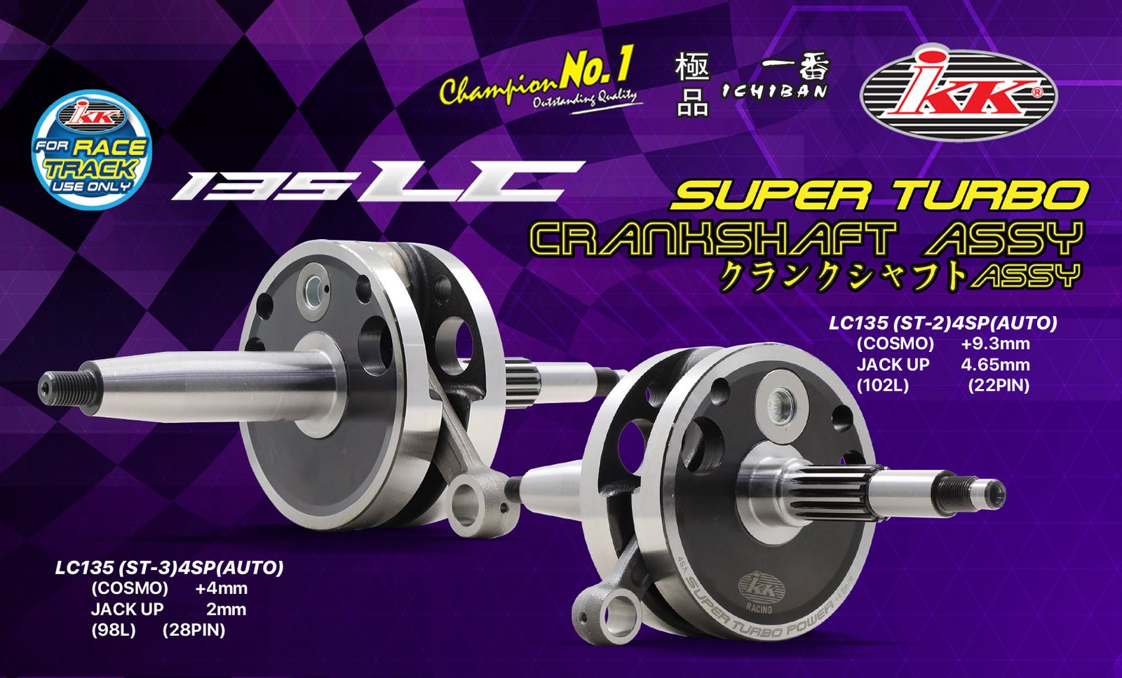 Bagi model Yamaha 135LC, IKK menyediakan pakej Crankshaft yang sesuai dengan model tersebut. Selain crankshaft, pakej yang disediakan oleh IKK turut merangkumi Jack Rod berbeza mengikut saiz yang dikehendaki pemilik motosikal.