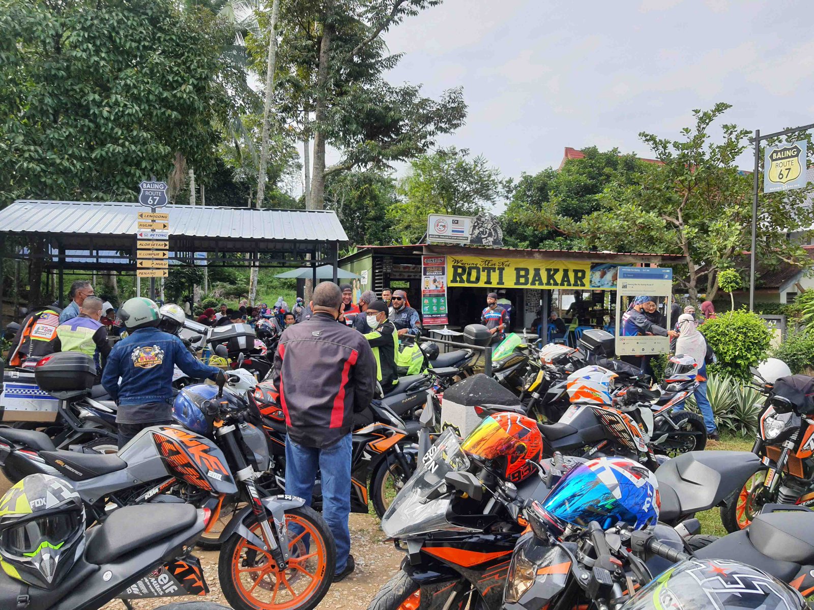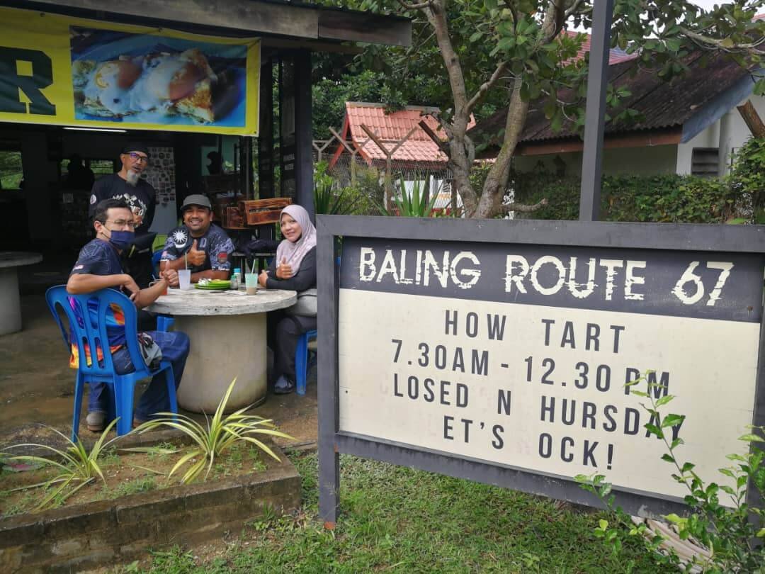 Cuaca cerah dan nyaman yang mengiringi sepanjang perjalanan amat memukau pemandangan. Para peserta konvoi tiba di Pekan Baling tepat jam 9.20 pagi. Warung Mat Noi yang berkonsepkan PitStop Route 67 amat terkenal di kalangan bikers kerana menyajikan sarapan ala inggeris yang menarik.