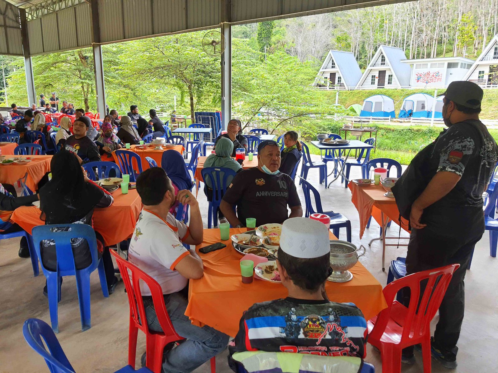 Para peserta disajikan masakan kambung seperti nasi dulang yang dihidangkan bersama gulai masak batang pisang serta ayam masak merah yang lazat disulami ulam dan kerabu serta ikan masin yang sungguh menyelerakan. Rata-rata peserta konvoi teruja menikmati makan tengah hari di sini.