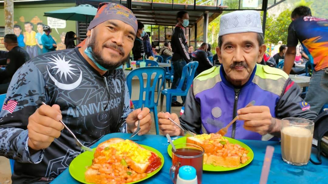 Para peserta diberi masa selama sejam untuk bersarapan sebelum meneruskan perjalanan ke destinasi seterusnya bagi menyampaikan sumbangan kepada Masjid Kg Batu 48. Program Jom Infak Masjid ahli NVOG ini diteruskan sejak 2-3 bulan lalu. Masjid Ar-Rahmaniah Batu 48 merupakan tapak asal masjid di Kampung Masjid Lama Bongor.