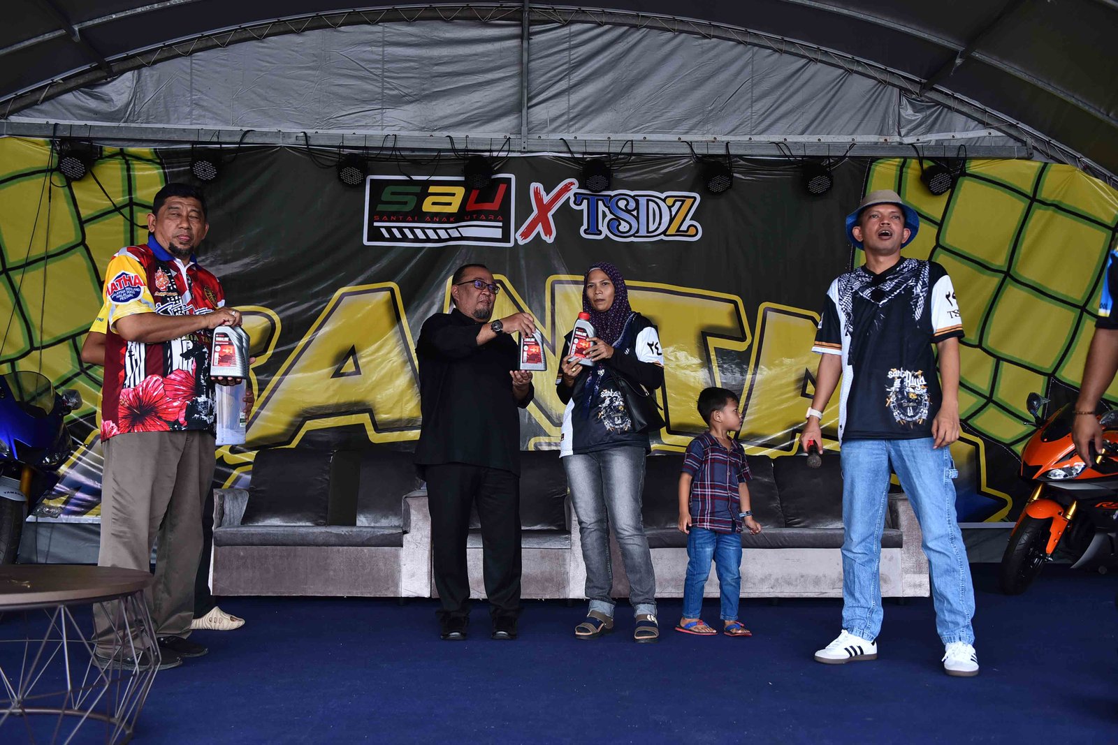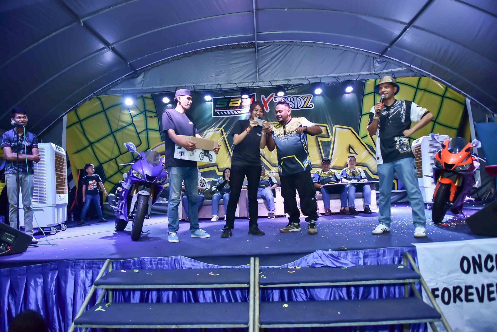Sebanyak 4 hadiah utama telah menjadi rebutan iaitu dua buah motosikal Yamaha R25, sebuah lev elektrik dan sebuah motosikal Yamaha Y15. Bukan itu sahaja, sebanyak 100 hadiah lain turut disediakan oleh para penaja yang terdiri daripada Tobaki, FKR, Koyoko dan IPone. Selain berdebar menunggu keputusan cabutan bertuah, para hadirin dihiburkan dengan telatah dua pengacara yang dijemput khas iaitu Abu dan Ajo.