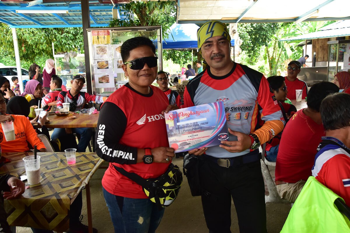 Selepas sesi bergambar, konvoi meneruskan perjalanan yg mencabar melalui Jalan Teluk Bahang ke Sg Pinang Balik Pulau. Konvoi berhenti rehat dan menyejuk tekak dengan minuman coconut shake di Permatang Pasir. Perjalanan diteruskan ke jambatan kedua untuk majlis penyampaian sjil kepada para peserta.