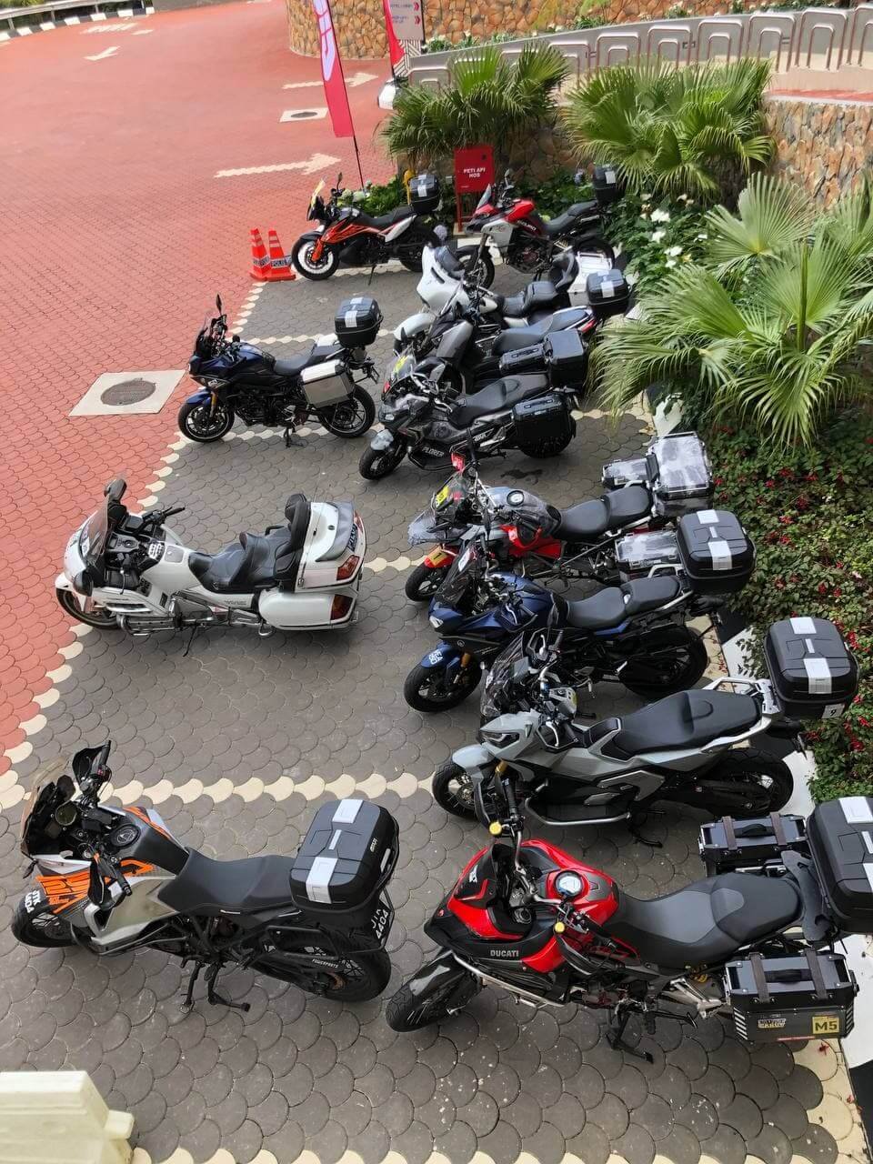 Wakil media termasuk penulis yang mengikuti konvoi bermotosikal ke Majlis Tontonan Media ‘The Atlas’ di Cameron Highlands masing-masing dilengkapi dengan kotak simpanan model B45NM Atlas Monolock Top Case setiap satu.
