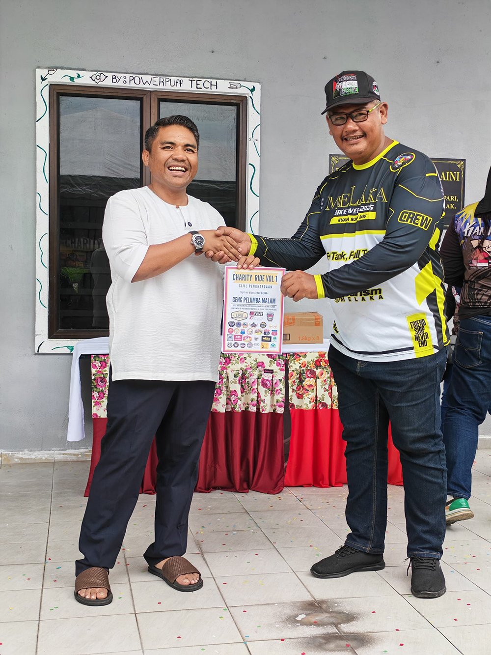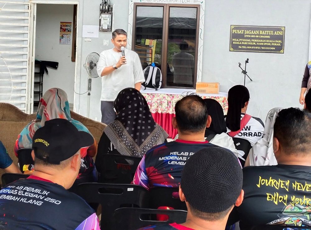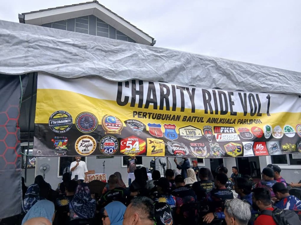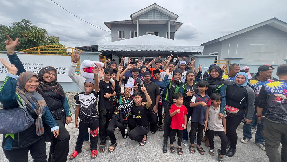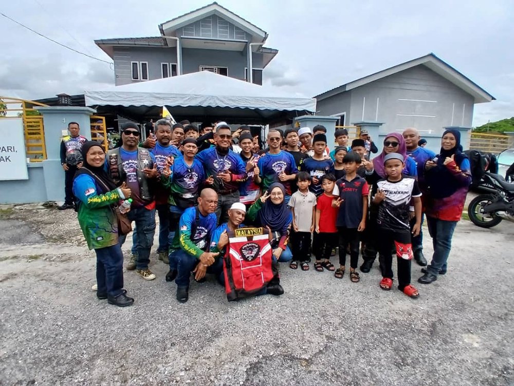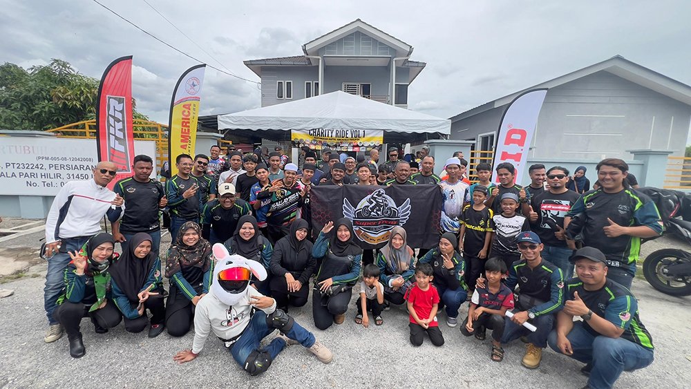 Slogan “Ride berkumpulan, bukan kroni” menjadi semangat utama yang mengikat semua peserta tanpa mengira kelab atau latar belakang. Melalui jalan berliku di Simpang Pulai, konvoi tersusun ini menjadi bukti bahawa semangat persaudaraan dalam dunia permotoran masih kukuh dan bermaruah. Setibanya di lokasi, suasana Baitul Aini bertukar meriah apabila anak-anak penghuni menyambut kedatangan para biker dengan senyuman dan kibaran bendera. Beberapa penaja turut hadir memberi sokongan, antaranya FKR, All America, dan D.I.D Malaysia.
