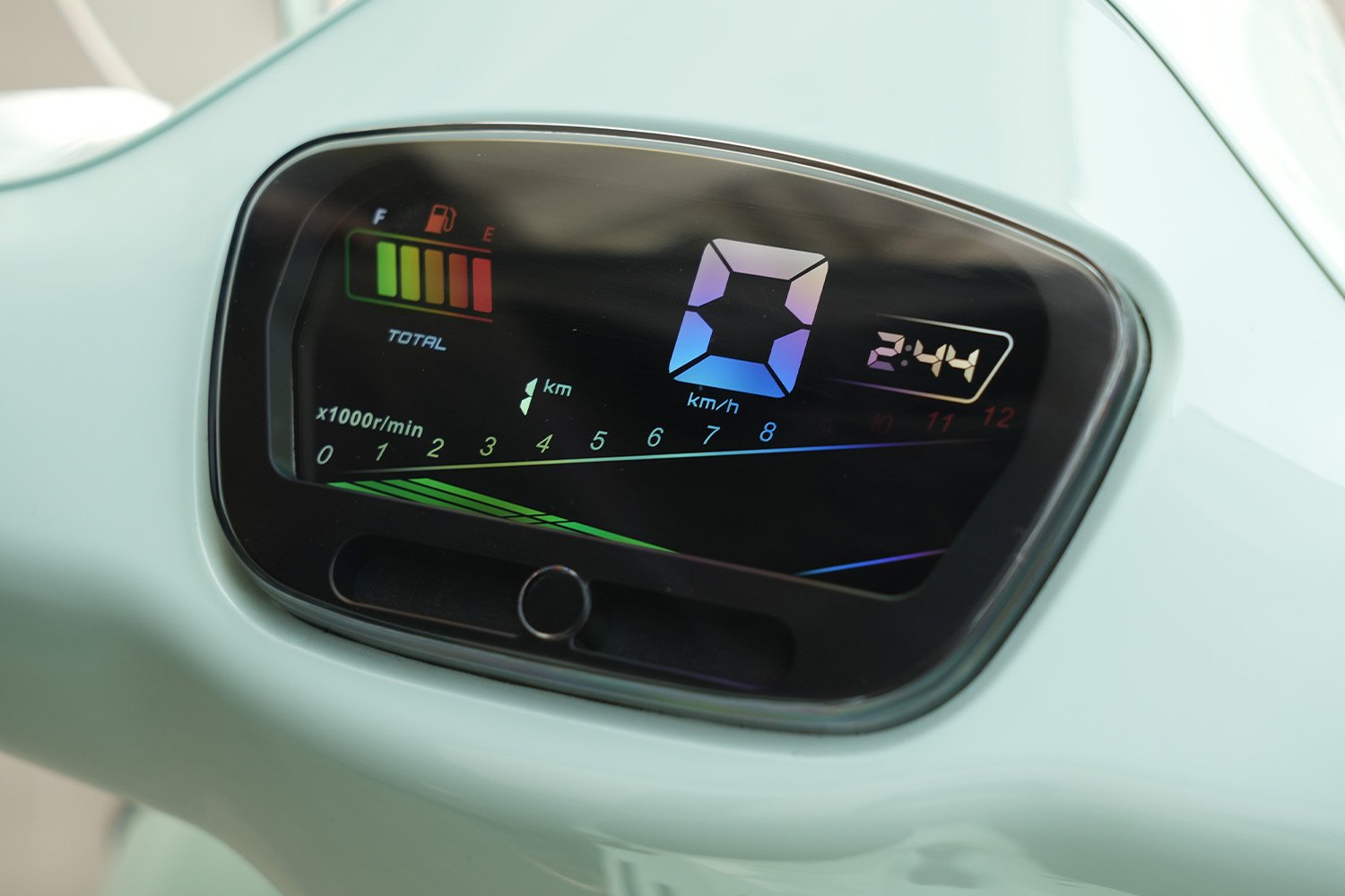 Walaupun tampil dengan rupa retro, Aveta tidak mengabaikan elemen teknologi moden. Skuter ini dilengkapi dengan paparan meter LCD digital berwarna yang memberikan informasi tunggangan dengan jelas, sama ada pada waktu siang mahupun malam. Selain itu, ciri keselamatan turut dititikberatkan melalui penggunaan brek cakera di bahagian hadapan bagi memastikan kuasa hentian yang lebih jitu, manakala bahagian belakang menggunakan sistem brek dram yang praktikal untuk penyelenggaraan mudah.