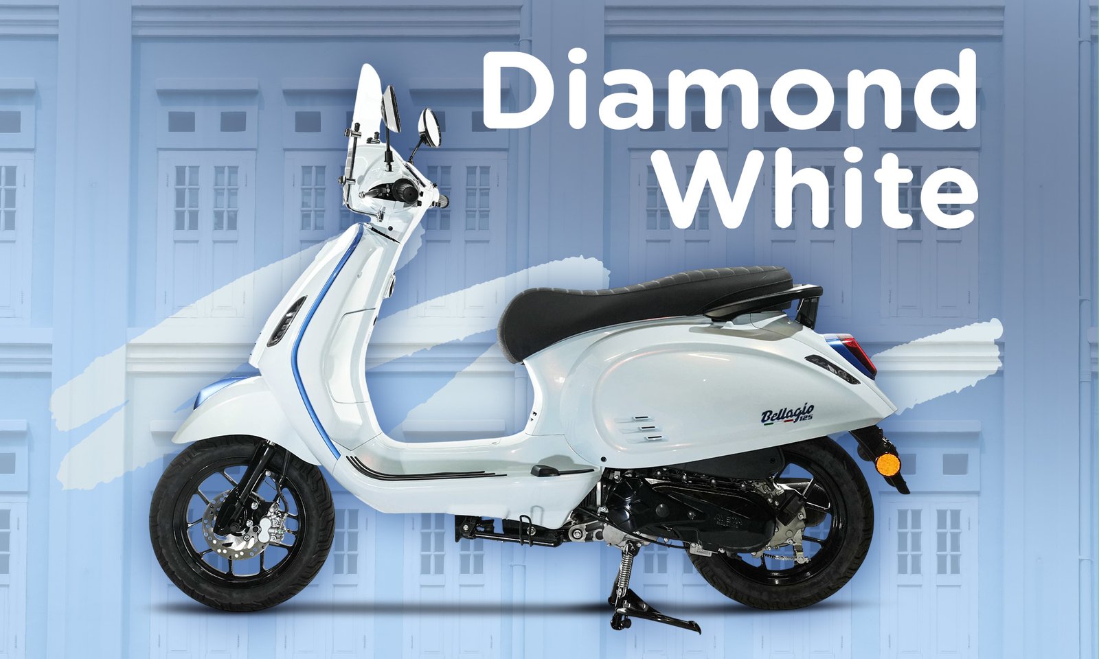 Reka bentuk luarannya jelas menonjolkan imej timeless dengan garisan badan yang melengkung dan elegan. Penggunaan lampu bulat yang klasik serta penghadang angin (Classic Windshield) bukan sahaja menambah nilai estetik, malah berfungsi secara praktikal bagi melindungi penunggang daripada tamparan angin dan cuaca ketika tunggangan harian. Ditawarkan dengan pilihan warna menarik seperti Diamond White, Pistachio Green, dan Carbon Black, Bellagio 125 sememangnya direka untuk mereka yang mahu tampil berbeza di jalan raya.
