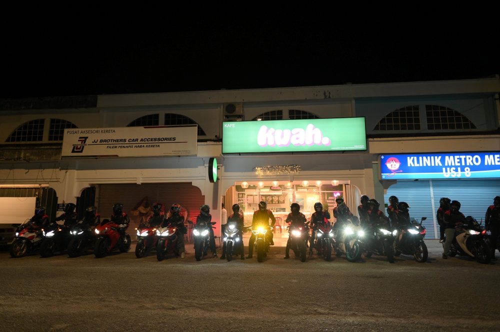 Destinasi persinggahan kali ini tertumpu di kafe Kuah yang terletak di Subang, sebuah lokasi tumpuan untuk aktiviti moreh dan sahur. Setibanya di sana, para peserta meluangkan masa untuk berehat sambil menikmati hidangan dalam suasana yang cukup santai. Sambil mengisi perut, ruang ini turut digunakan sepenuhnya untuk bertukar pandangan serta berkongsi pengalaman mengenai jentera masing-masing. Pertemuan di meja makan ini mengukuhkan lagi ikatan persaudaraan, membuktikan bahawa hobi dua roda ini melampaui sekadar minat teknikal, malah merupakan sebuah platform yang menyatukan jiwa.