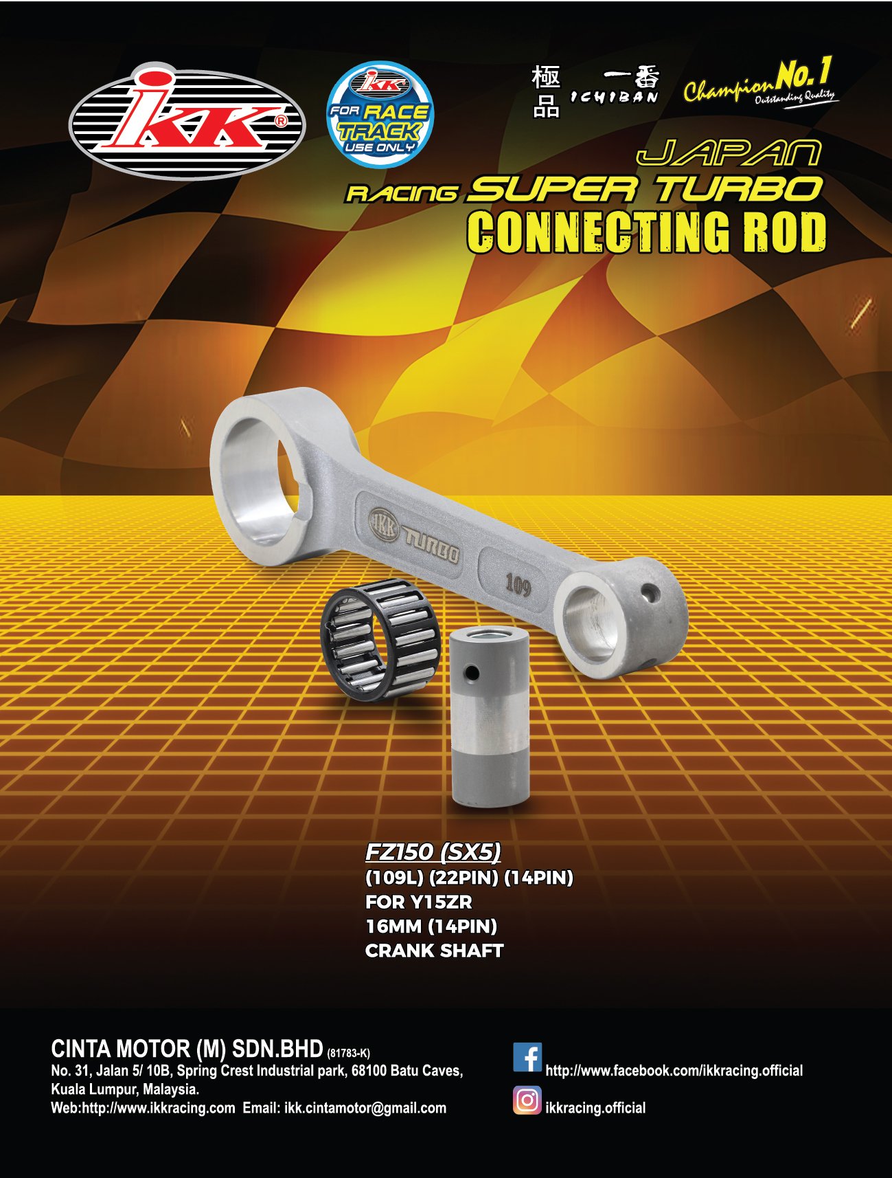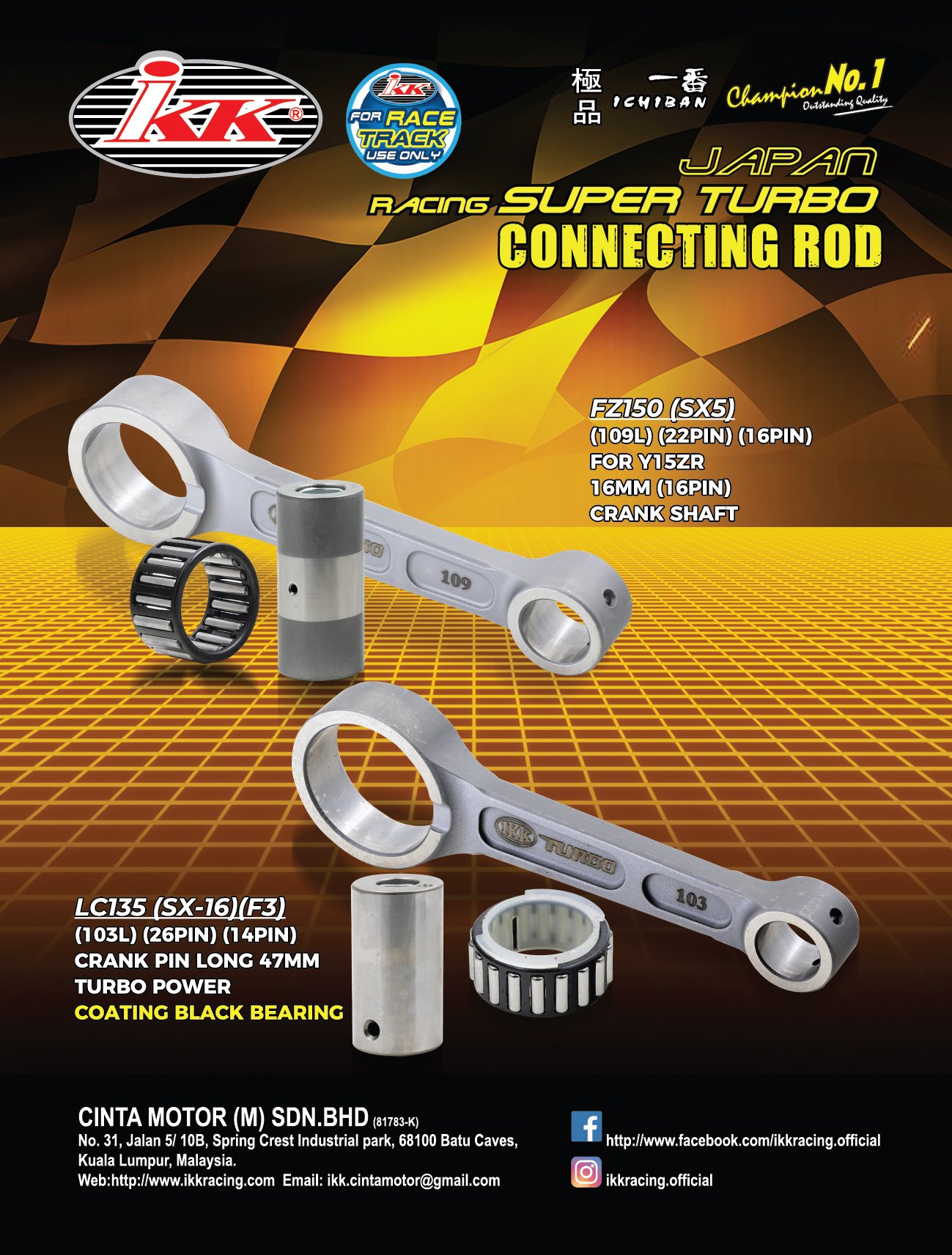 IKK memperkenalkan tiga pakej Con-Rod bagi beberapa model Yamaha. Jika anda, masih menggunakan jentera seperti Yamaha FZ150, LC135 atau model Y15ZR, jenama IKK mempunyai solusi bagi penggantian komponen ini.