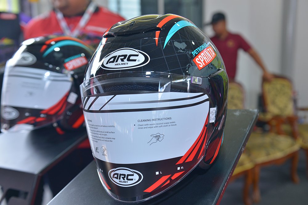 JENAMA ARC bukanlah calang-calang dalam dunia pembuatan topi keledar tempatan. Ditambah pula dengan kolaborasi dengan gergasi minyak pelincir tempatan, PETRONAS Sprinta menjadikan model topi keledar itu tampak lebih premium.