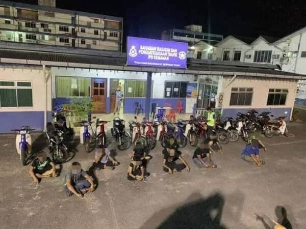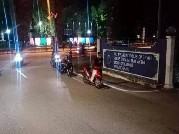 Menurut Ketua Polis Daerah Kemaman, Superintendan Hanyan Ramlan berkata, 14 lelaki tersebut minta menolak motosikal masing-masing sebagai pengajaran kerana berkumpul sambil memulas minyak motosikal untuk menunjukkan kehebatan bunyi ekzos motosikal masing-masing walaupun dalam tempoh PKP.