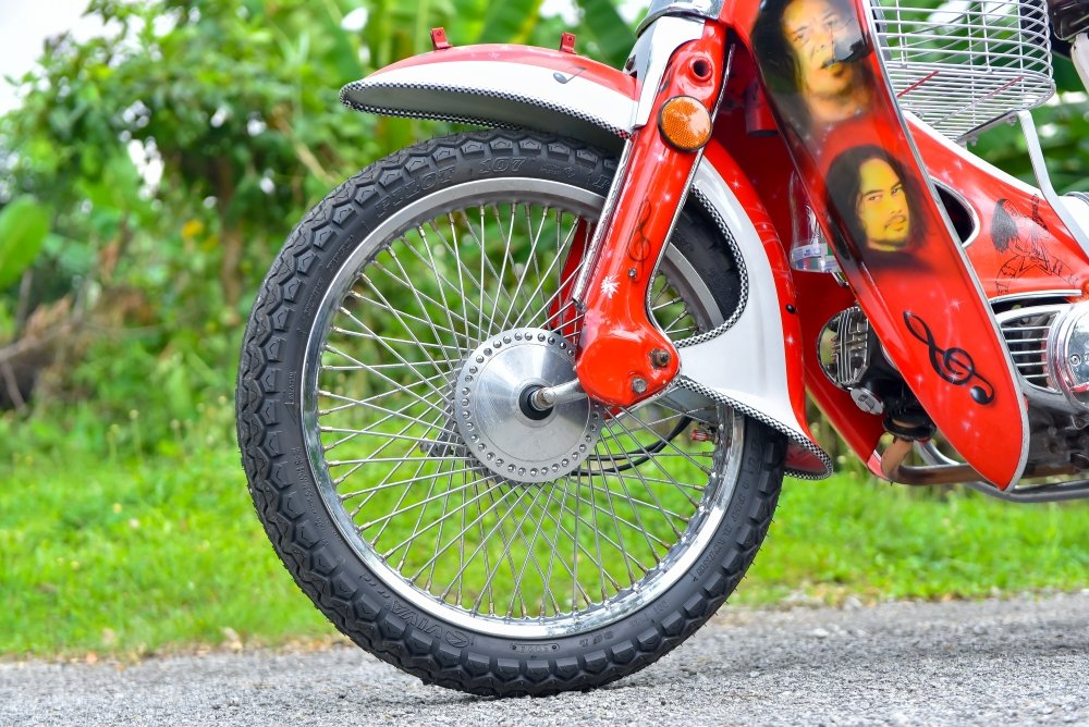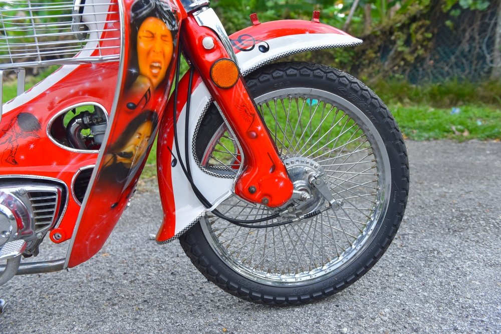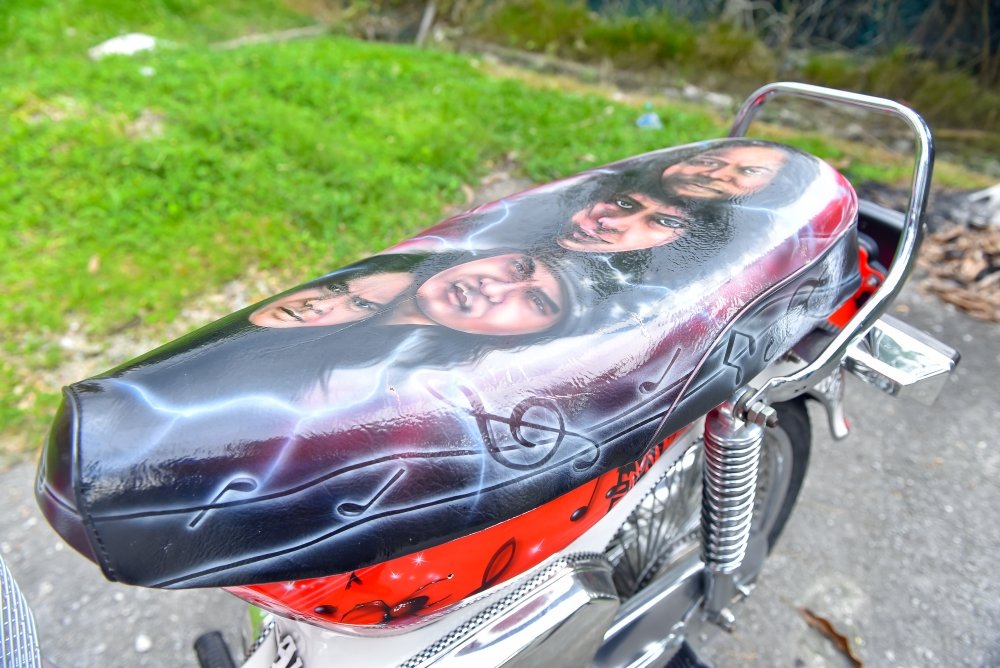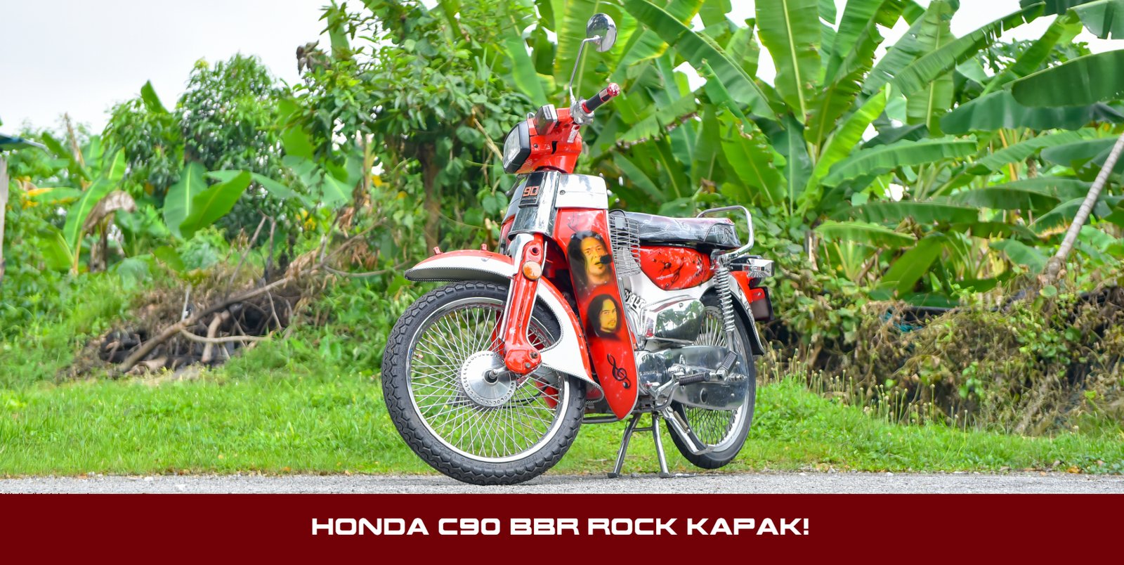 Dari lakaran teknik airbrush, Rozi menukilkan potret wajah empat artis tersohor yang satu ketika dahulu pernah menghiburkan masyarakat sama ada dari corong radio atau kaset sekitar tahun 80an dan 90an. Antara lagenda yang dimaksudkan adalah penyanyi dari kumpulan rock tanah air seperti Ramli Sarip (Sweet Charity), Awie (Wings), Amy (Search) dan Mus (May), menghiasi bahagian kepak dan pelana motosikal Honda C90.
