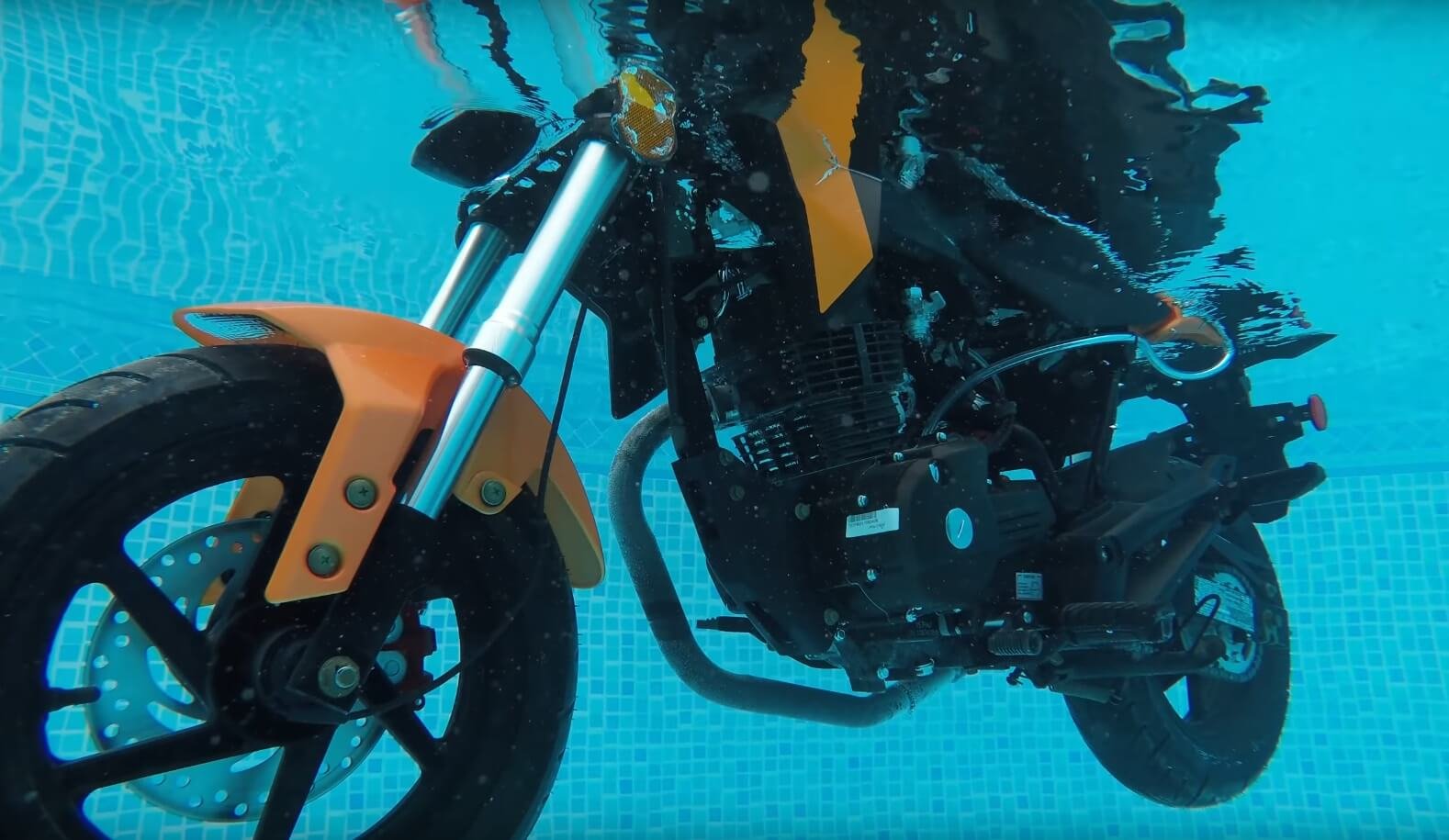 Sebelum motosikal benar-benar mencecah air, timbul beberapa isu dan diatasi dengan pantas. Apa yang menakjubkan, motor ini bukan sahaja boleh dihidupkan dalam air tetapi ia juga boleh ditunggang. Walaupun tak selaju di atas darat tetapi ia masih boleh ditunggang untuk 10 minit!
